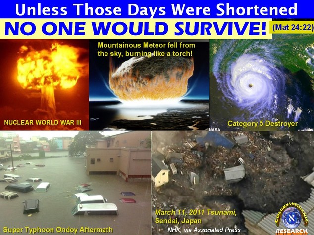 Matthew 24:22 (NLT) In fact, unless that time of calamity is shortened,