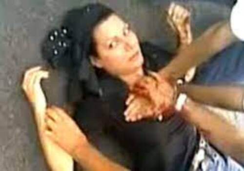Neda on the Ground Posing like Jesus on the Cross ‘Dying for her Country’